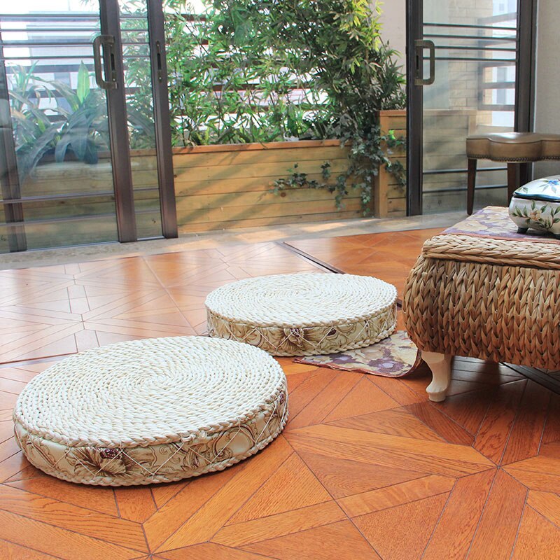 Cushions Round Pouf Natural Straw Round Pouf Tatami Cushion Floor Cushions Meditation Yoga Round Mat Zafu Chair Cushion