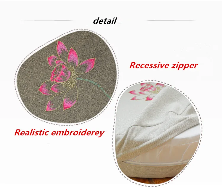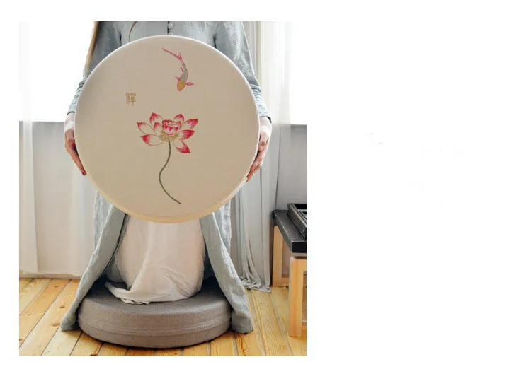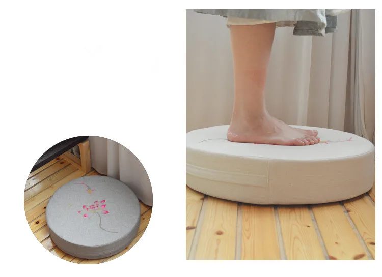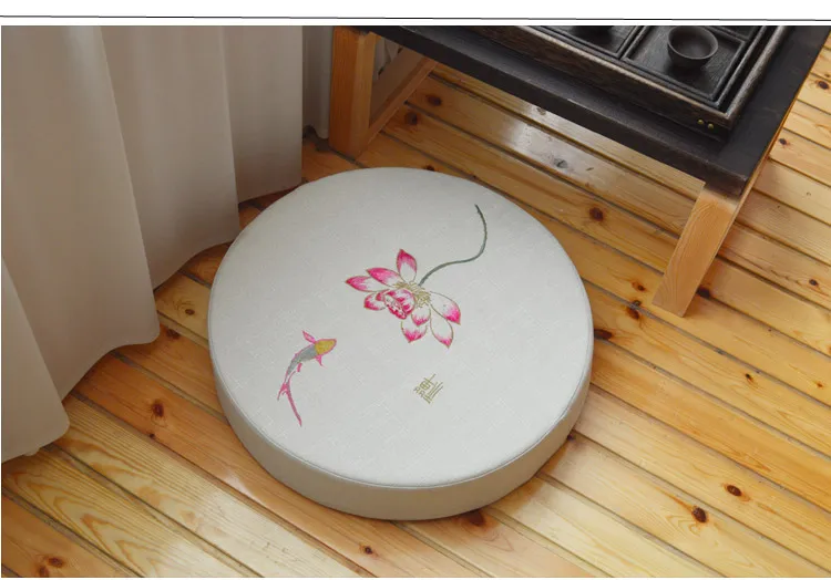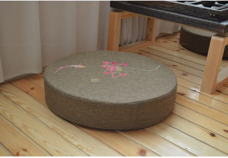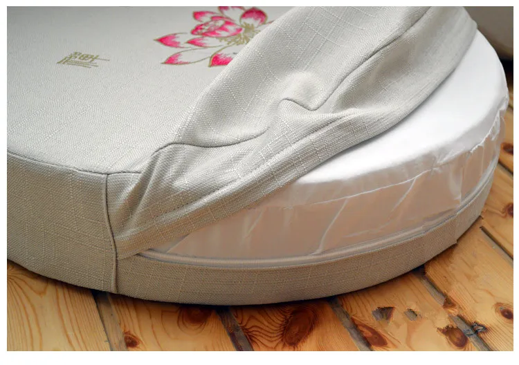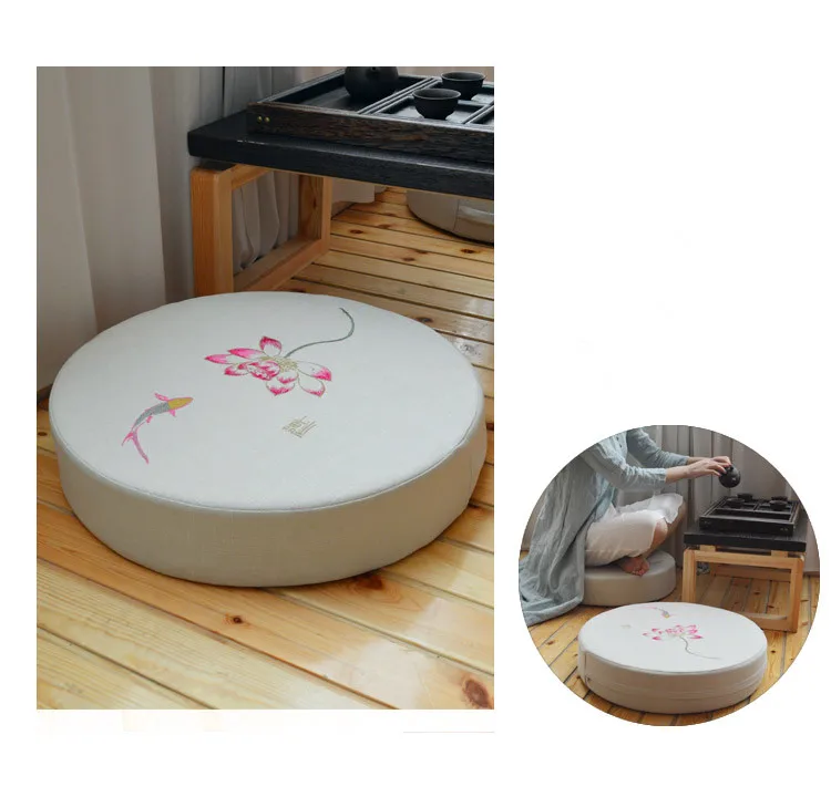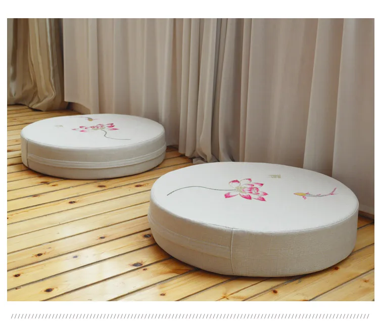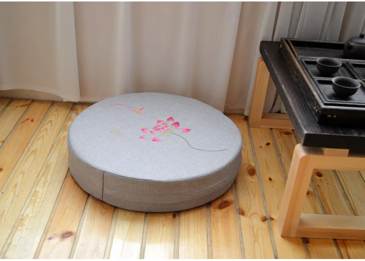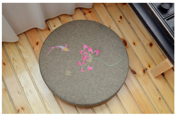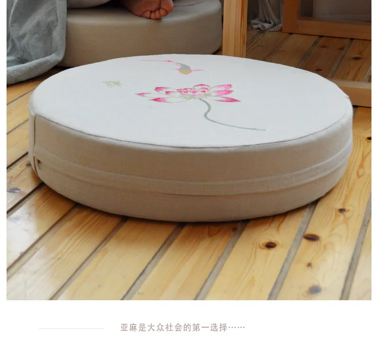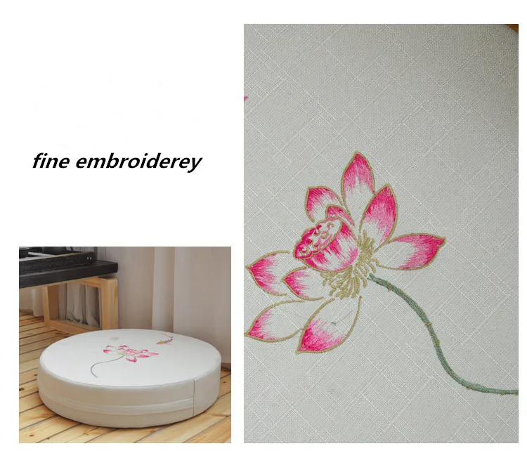 Round Linen Embroiderey Lotus Tatami / Meditation Cushion Home Decorative Removable And Washable Multi-function Seat Cushion